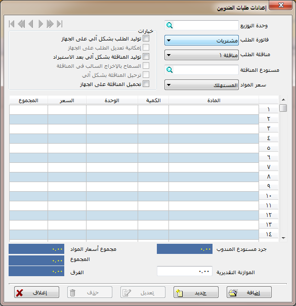 إضافة خيار جديد إلى القائمة وهو عدم السماح بإضافة مواد تتجاوز الموازنة مع الأخذ بعين الاعتبار قيمة الجرد الحالي للمندوب.